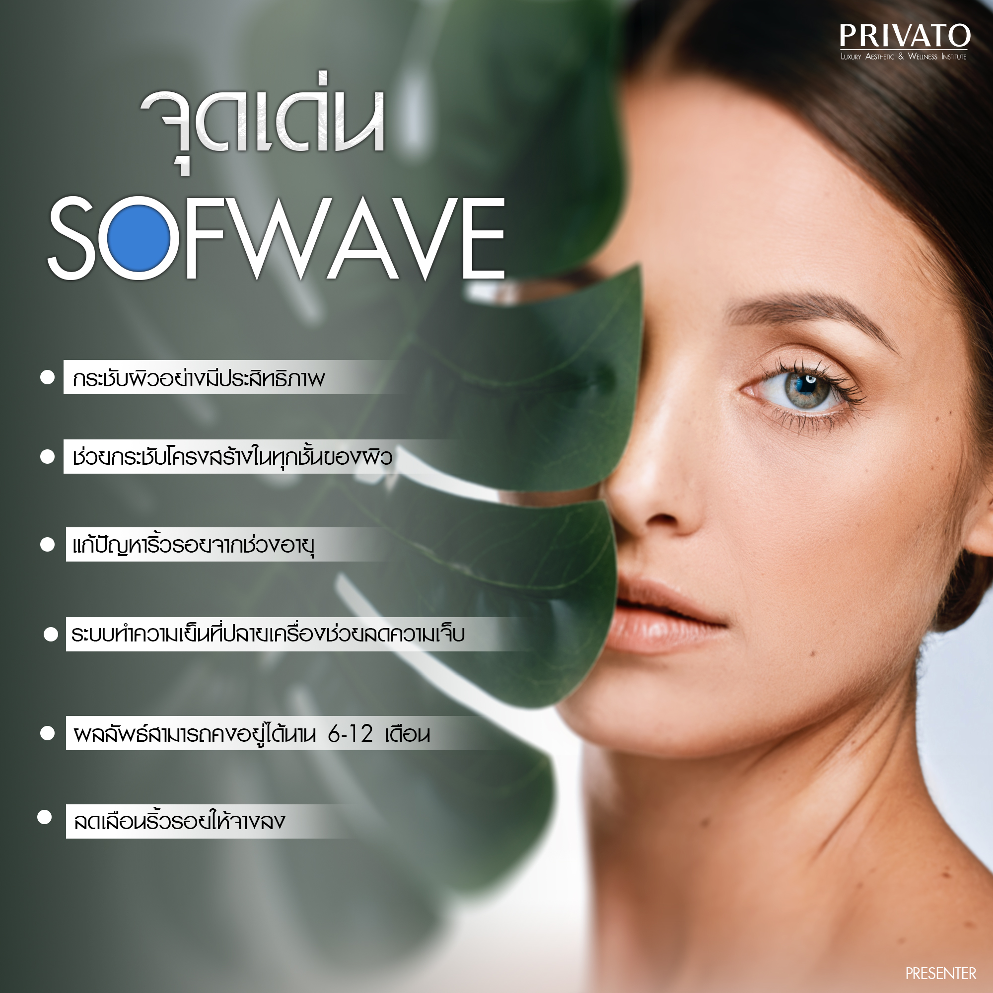 Sofwave (ซอฟเวฟ) คือ นวัตกรรมในการยกกระชับผิวและลดเลือนริ้วรอย ด้วยเทคโนโลยี SUPERBTM (Synchronous Ultrasound Parallel Beam Technology) ซึ่งเป็นการยิงคลื่นอัลตราซาวนด์ความถี่สูง ที่สามารถส่งพลังงานได้อย่างสม่ำเสมอและแม่นยำ ลงไปยังชั้นผิวหนังแท้ เพื่อกระตุ้นการสร้างคอลลาเจน ช่วยให้ผิวดูกระชับและเรียบเนียนยิ่งขึ้น